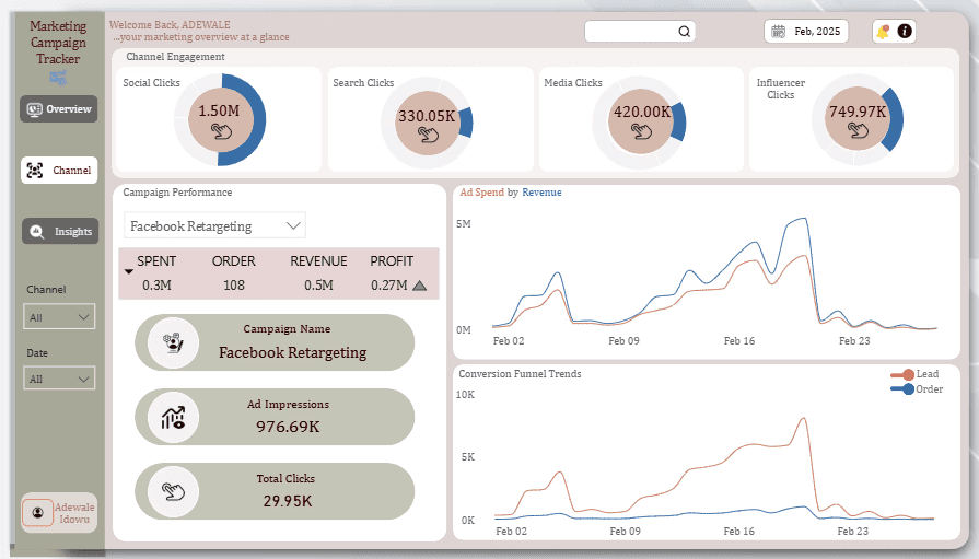 Evaluate campaign performance, identify high-ROI channels, and optimize funnel efficiency